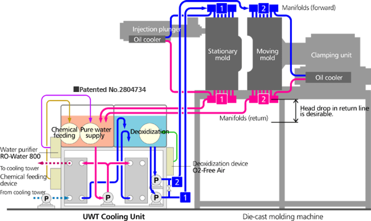 Controlled cooling water prevents corrosion to enhance precision and stable molding.
